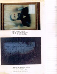 Top picture is that of James Leland Ariail, son of William Harrison Ariail. Bottom picture is grave marker for Amaryllis Hamilton Ariail, …