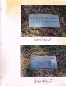 Top picture is marker for Julius Fellows Ariail, II, son of Julius Fellows Ariail, I. Bottom picture is marker for Jeannette Ariail Petrie…