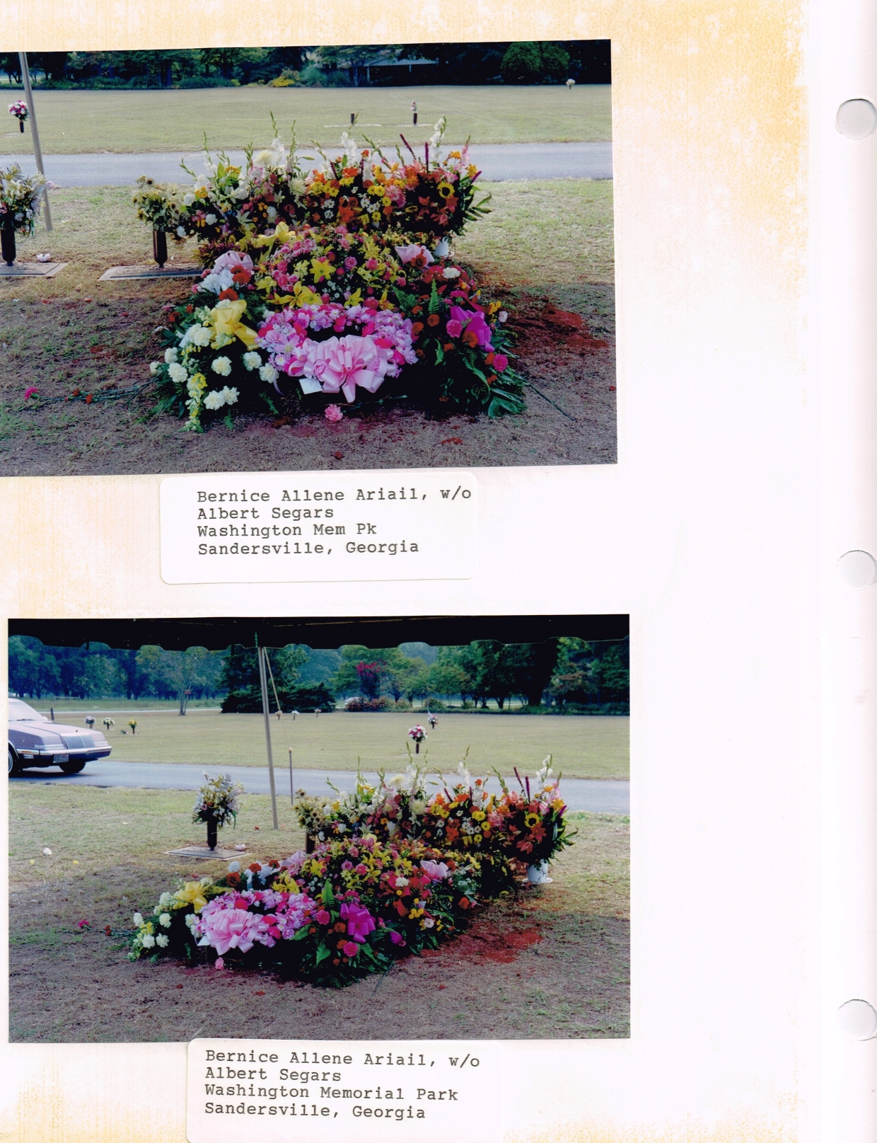 Both pictures are of the grave of Bernice Allene Ariail immediately after her funeral. She was the daughter of John Harrison Ariail and a close cousin of the Ariail Family Historian, James Patterson. She was the lady who had kept the Family Bible which contained family data from 1775. She presented it to the Ariail Family so they could keep it safe for generations to come. We have this Bible at the Family Reunion each year for everyone to view.
