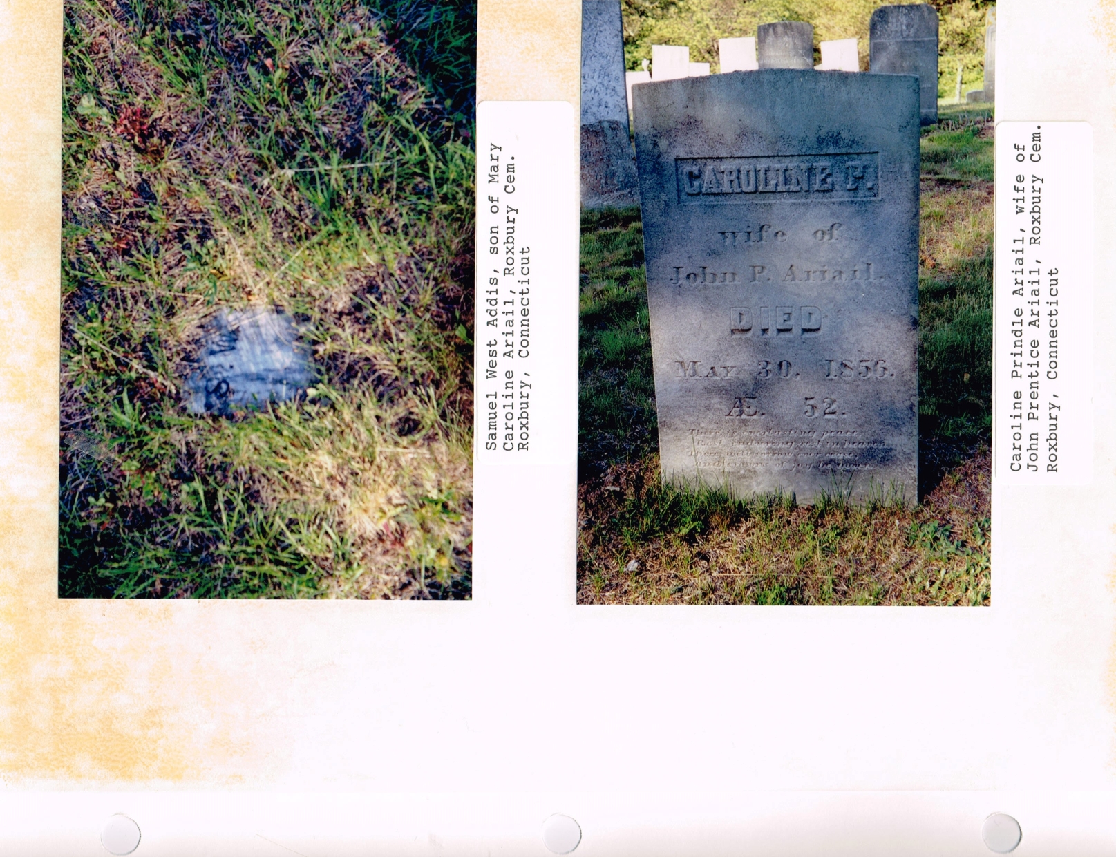 Left picture is marker for Samuel West Addis, son of Mary Caroline Ariail. Right picture is marker for Caroline Prindle, wife of John Prentice Ariail. John was the son of Luke Ariail, brother of Esq. Ens. John Harvey Ariail, Sr., who came to South Carolina in 1795.