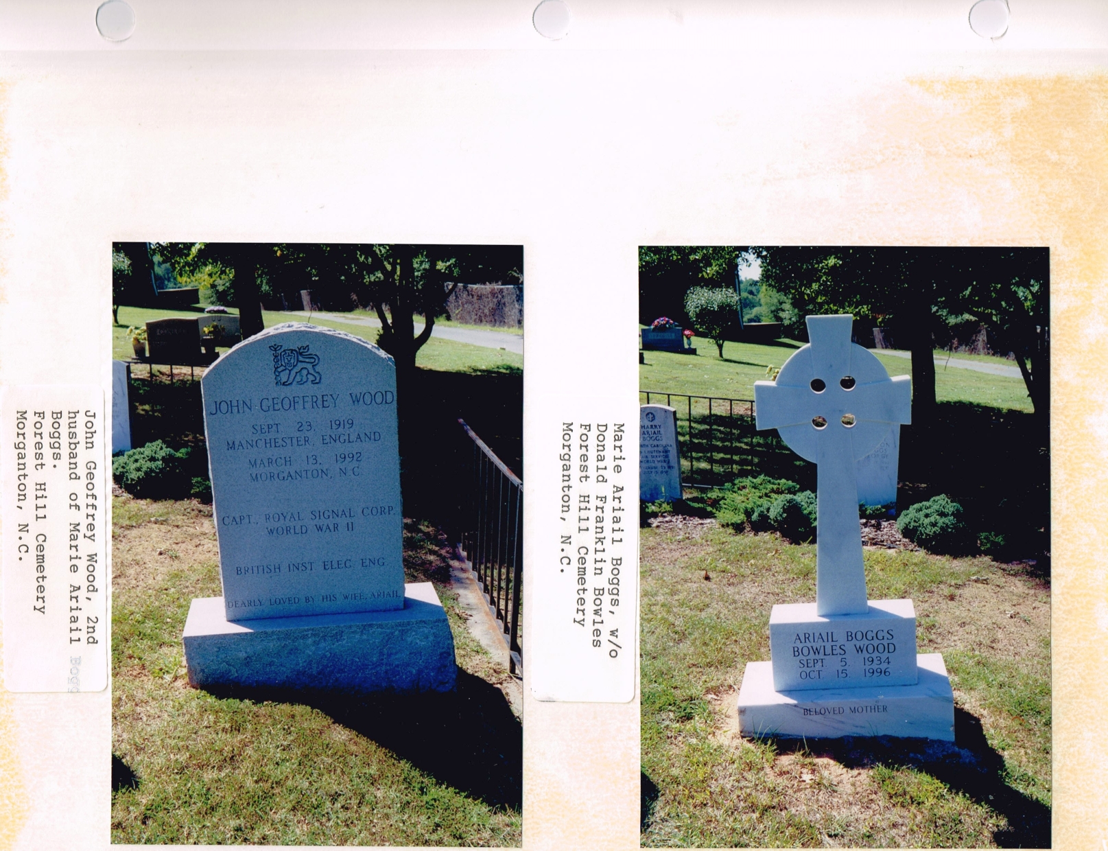 Left picture is marker for John Geoffrey Wood, husband of Marie Ariail Boggs. Right picture is marker for Marie Ariail Boggs, granddaughter of Kate Archer Ariail.