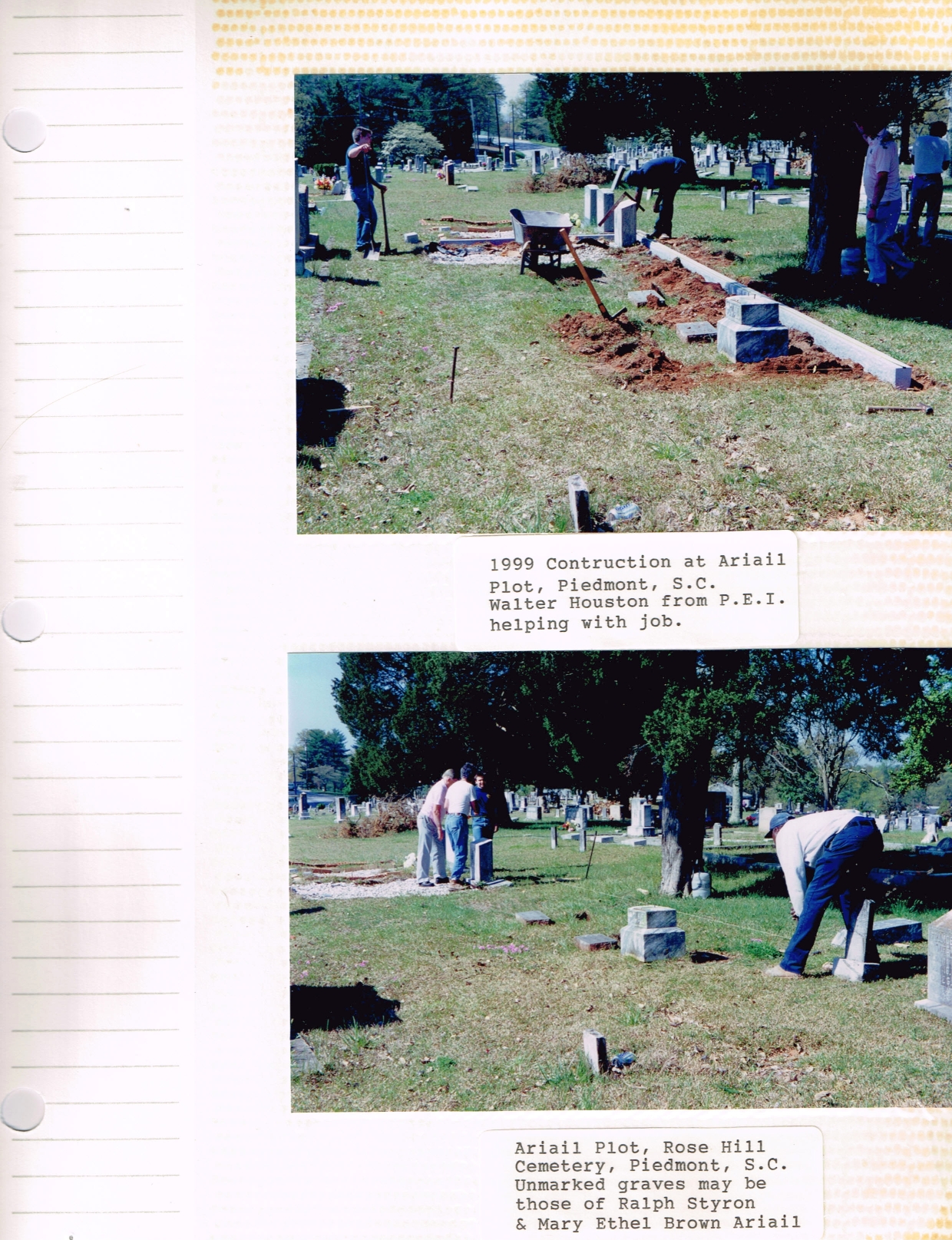 Top and bottom pictures show various stages of construction of the John Alvin Ariail family plot at Rose Hill Cemetery in Piedmont, South Carolina. This work was being accomplished by the Ariail Family Cemetery Committee.